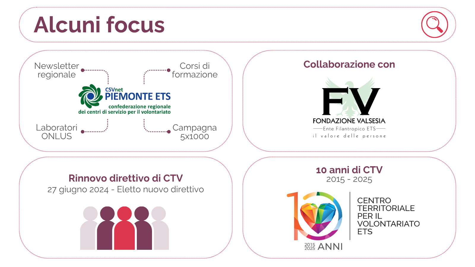 Si ringrazia l’intero staff di CTV e il consiglio direttivo per la collaborazione nella redazione dei testi e nella raccolta delle informazioni.