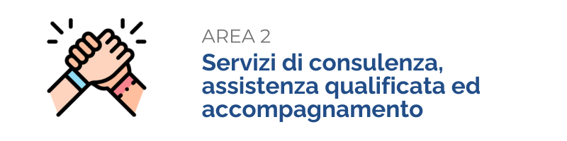 Area 2 – Servizi di consulenza, assistenza qualificata ed accompagnamento in tutti gli ambiti di interesse per il volontariato e il mondo del Terzo settore, volti ad affiancare e supportare i volontari e gli ETS nella gestione ordinaria delle loro attività.