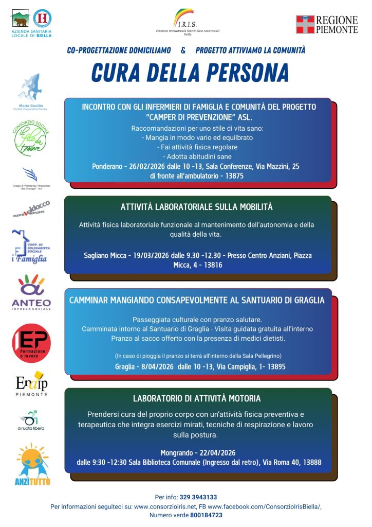 Per informazioni sugli appuntamenti, date e luoghi seguiteci su: www.consorzioiris.net, FB https://www.facebook.com/ConsorzioIrisBiella?locale=it_IT, numero verde 800184723, sedi territoriali (Andorno, Candelo, Cavaglià, Gaglianico, Valle Elvo, Verrone).