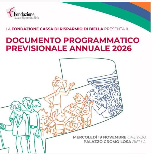 La Fondazione Cassa di Risparmio di Biella è lieta di invitarvi, mercoledì 19 novembre p.v. alle ore 17.30 a Palazzo Gromo Losa (Biella, Corso del Piazzo 22) alla presentazione del Documento Programmatico Previsionale 2026.