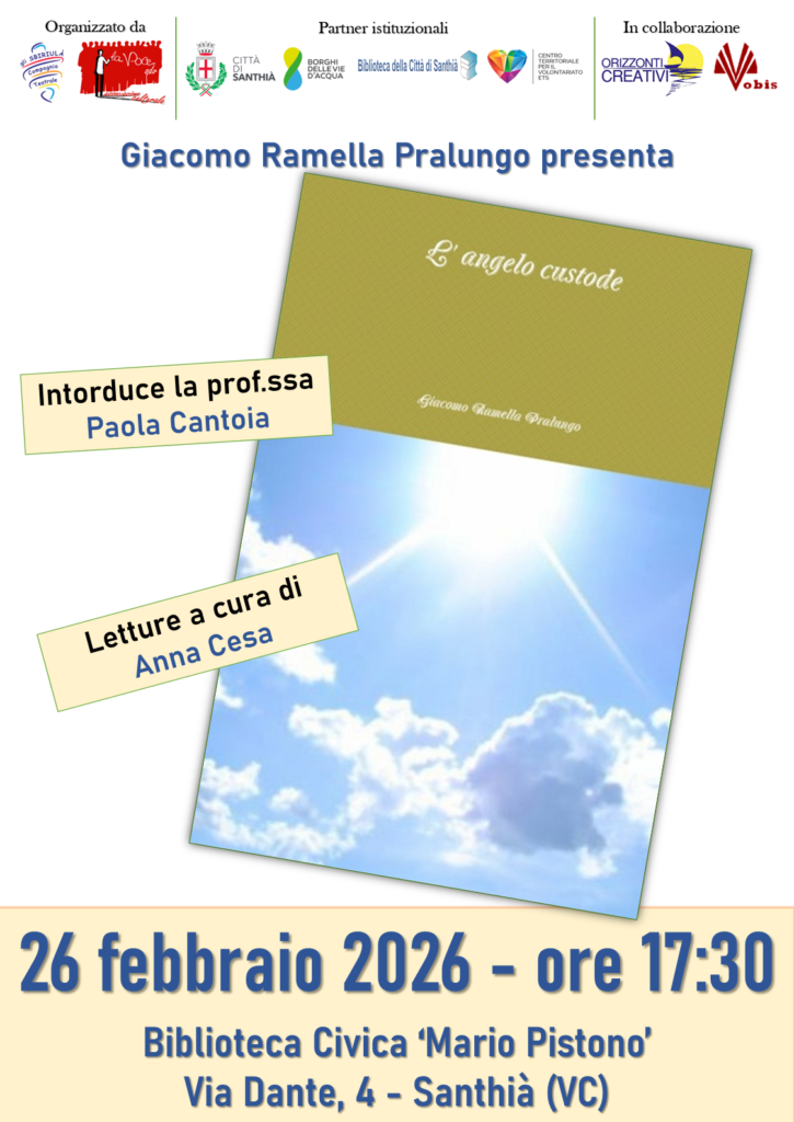 Lo potrete scoprire giovedì 26 febbraio 2026 alle ore 17:30 presso la biblioteca Civica ‘Mario Pistono’ in via Dante 4 a Santhià. La professoressa Paola Cantoia introdurrà la serata mentre le letture saranno a cura di Anna Cesa, entrambe dell’Associazione Orizzonti Creativi.