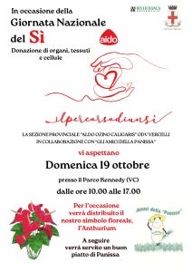 Il momento topico degli eventi dedicati alla Giornata Nazionale si svolgerà il prossimo 19 ottobre 2025 presso il Parco Kennedy (vicino alla stazione ferroviaria di Vercelli), con la collaborazione degli “AMICI DELLA PANISSA di Albano Vercellese” che per l’occasione prepareranno il gustoso piatto tipico vercellese a base di riso che verrà distribuito alla cittadinanza per sostenere le attività dell’ente in tema di donazione e di divulgazione del messaggio del dono.
