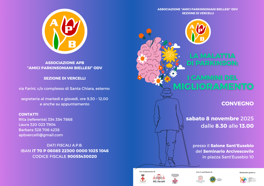 Sabato 8 novembre, dalle 8,30 alle 13, nella Sala Sant’Eusebio del Seminario Arcivescovile di Vercelli, si svolgerà il convegno organizzato dall’Associazione Amici Parkinsoniani Biellesi, Sezione di Vercelli.