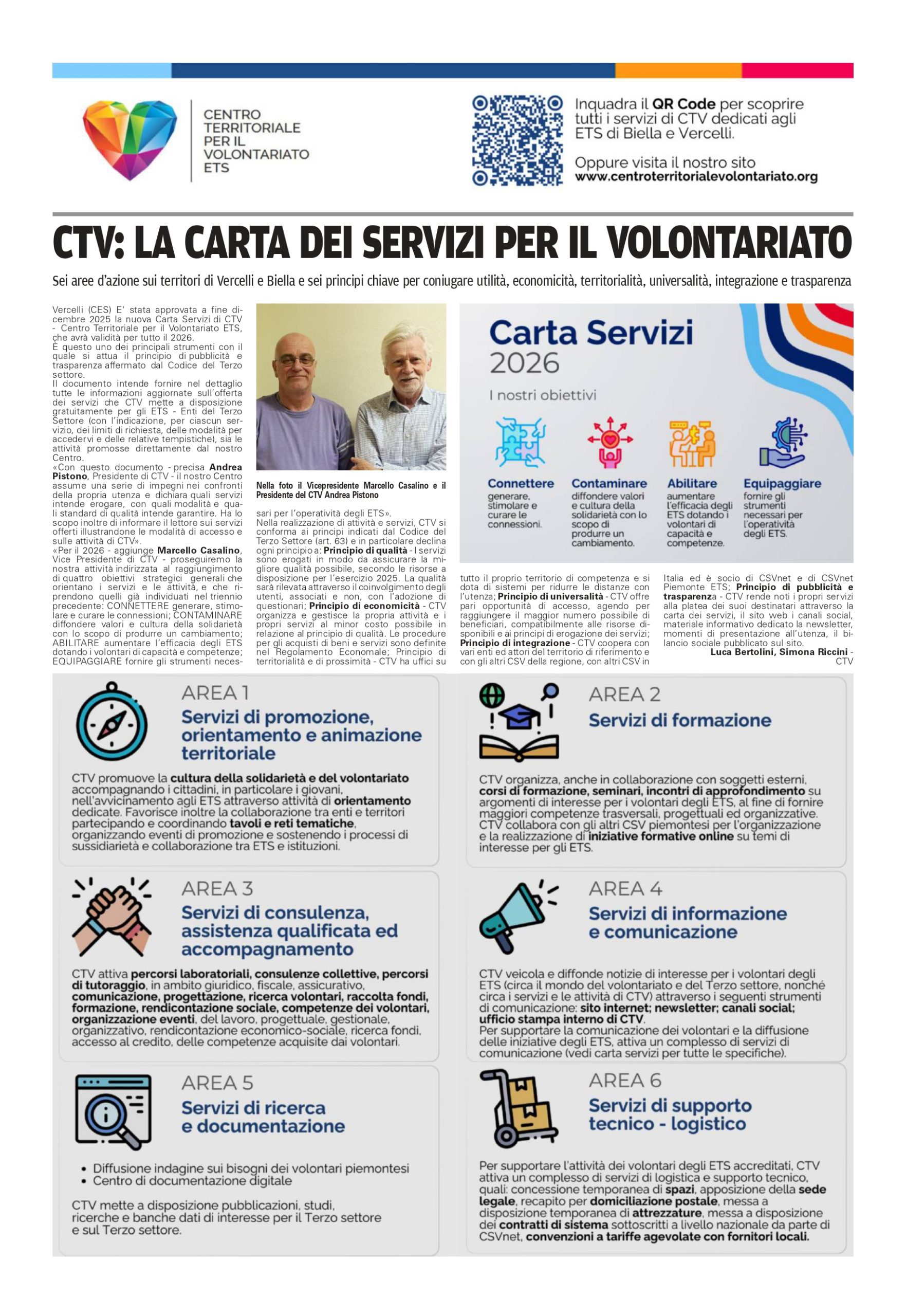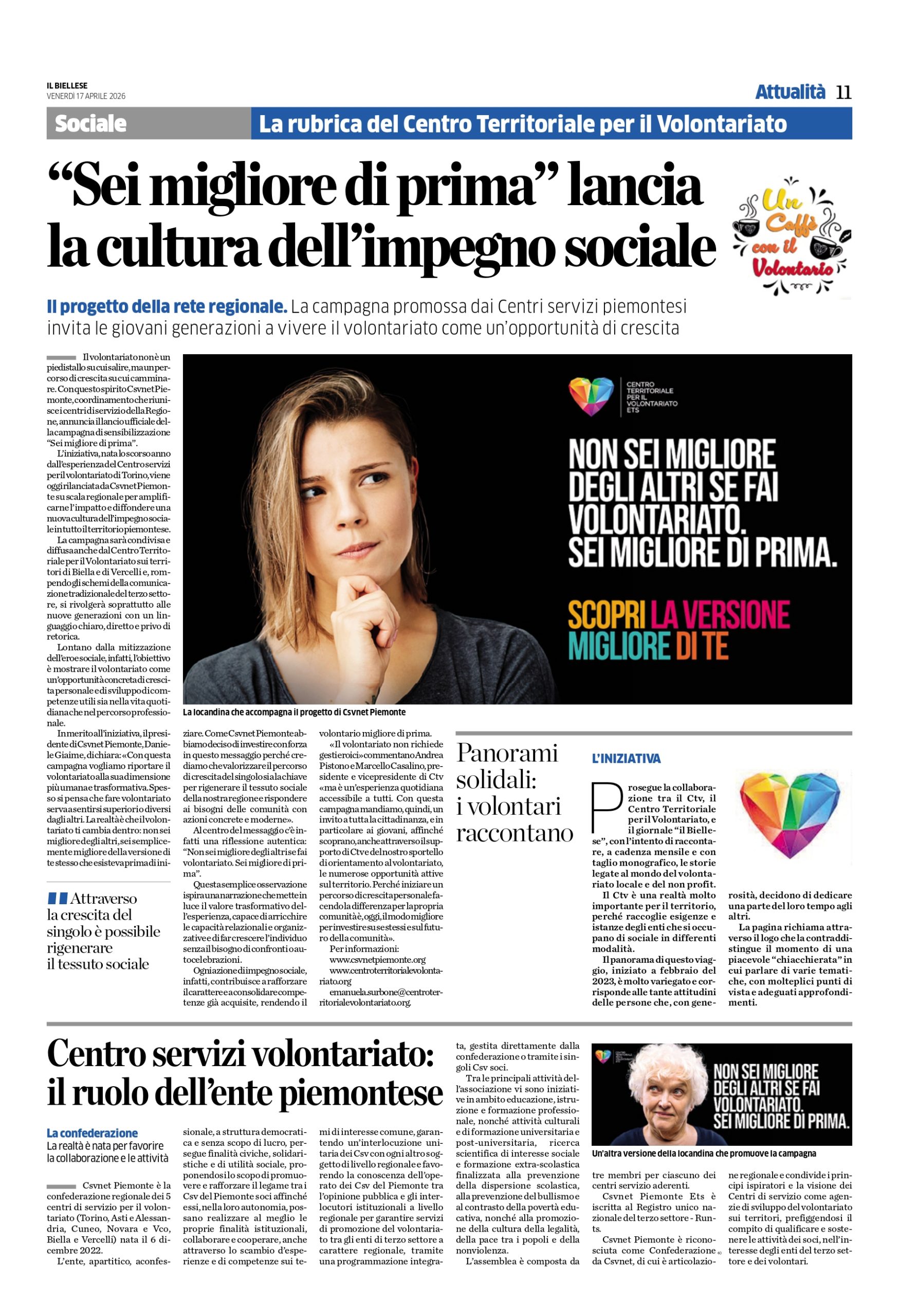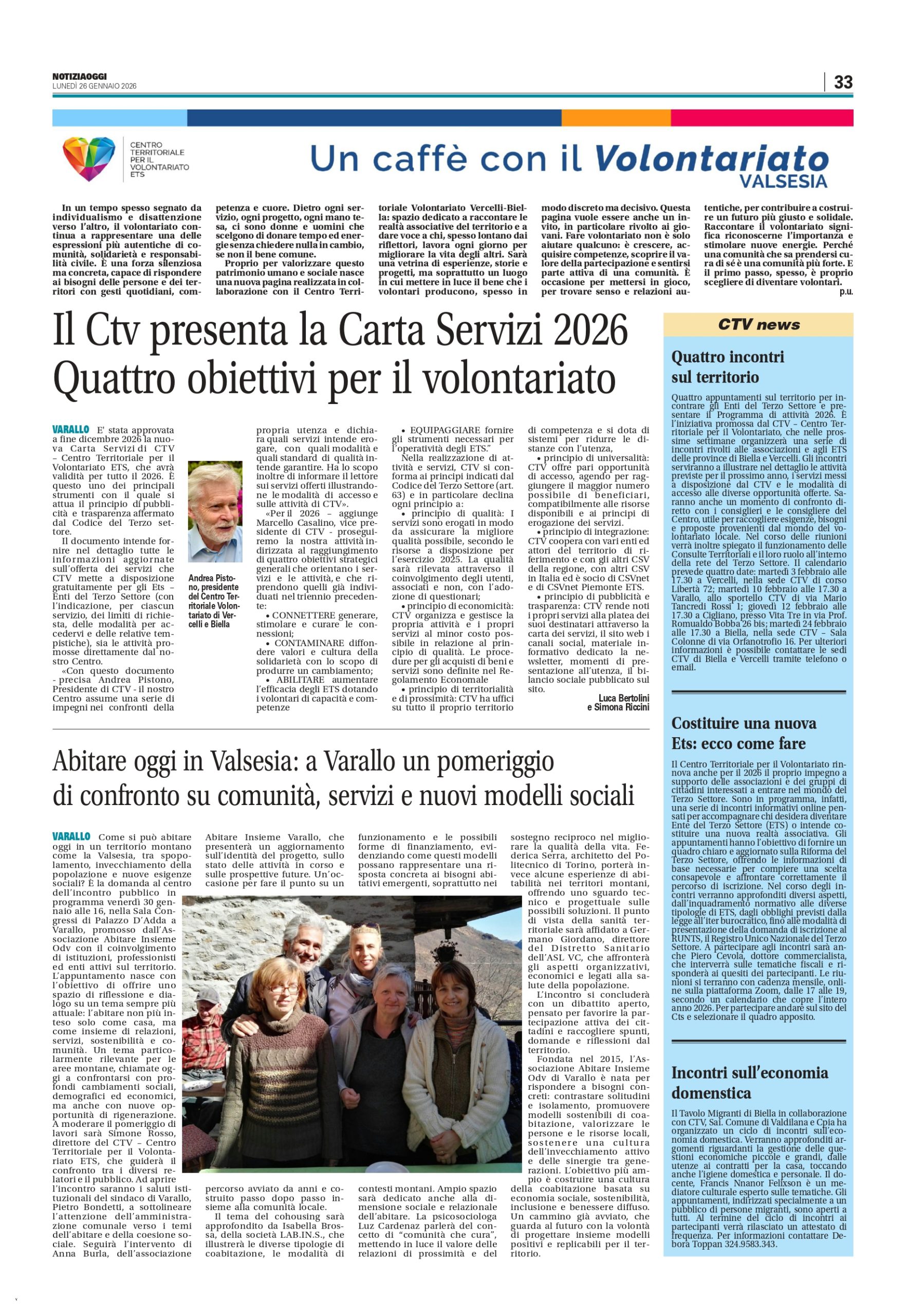 Ecco le pagine frutto della collaborazione fra CTV – Centro Territoriale Volontariato e i giornali locali Notizia Oggi a Vercelli – Valsesia e Il Biellese a Biella, con l’intento di raccontare, a cadenza mensile e con taglio monografico, le storie legate al mondo del volontariato e del non profit.